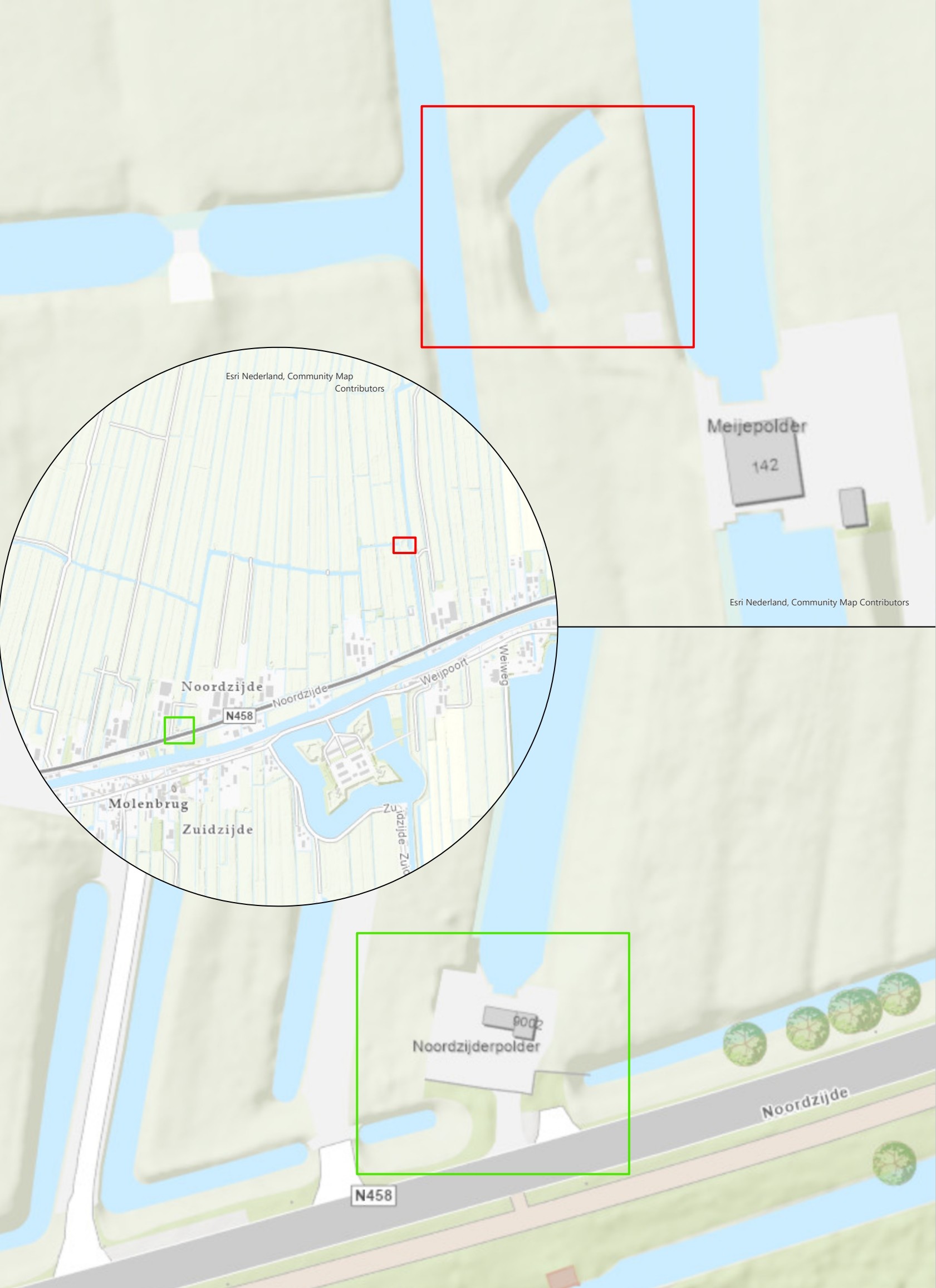 De verbinding die we maken tussen de Noordzijderpolder en de Meijepolder ligt op het perceel ten westen van gemaal Meijepolder bij Noordzijde 142 te Bodegraven