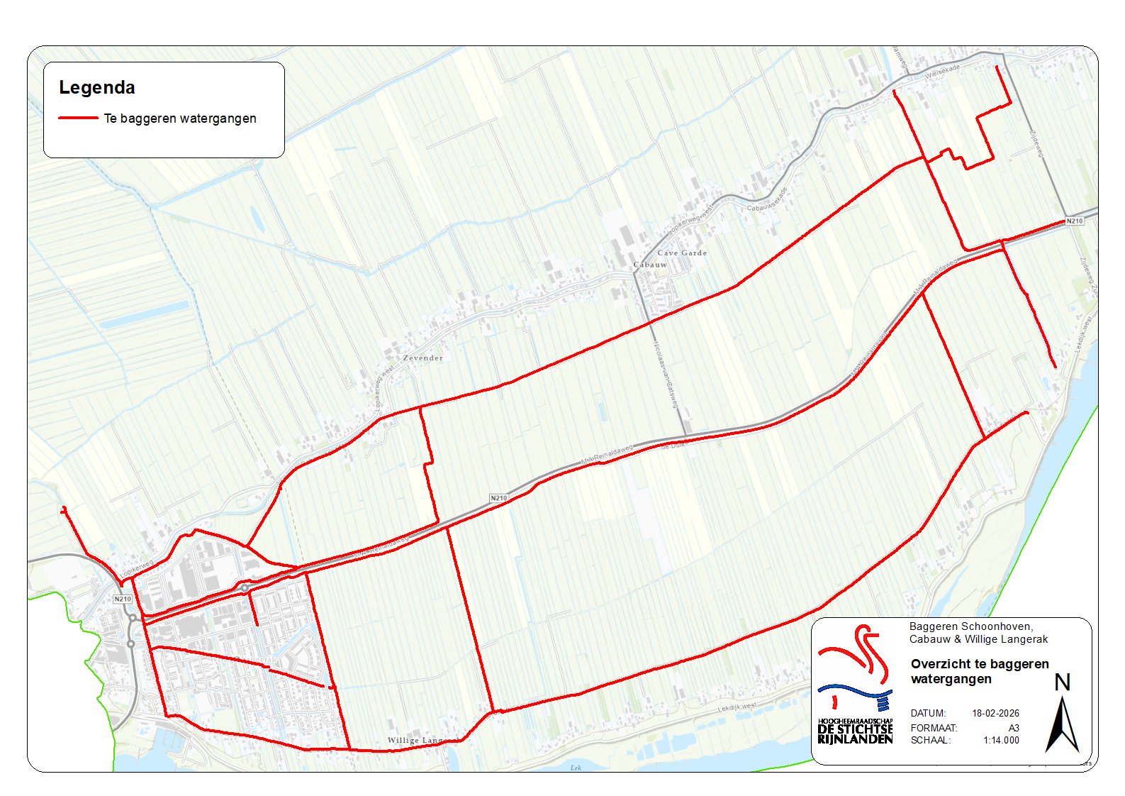 Op de kaart ziet u waar we sloten gaan baggeren.