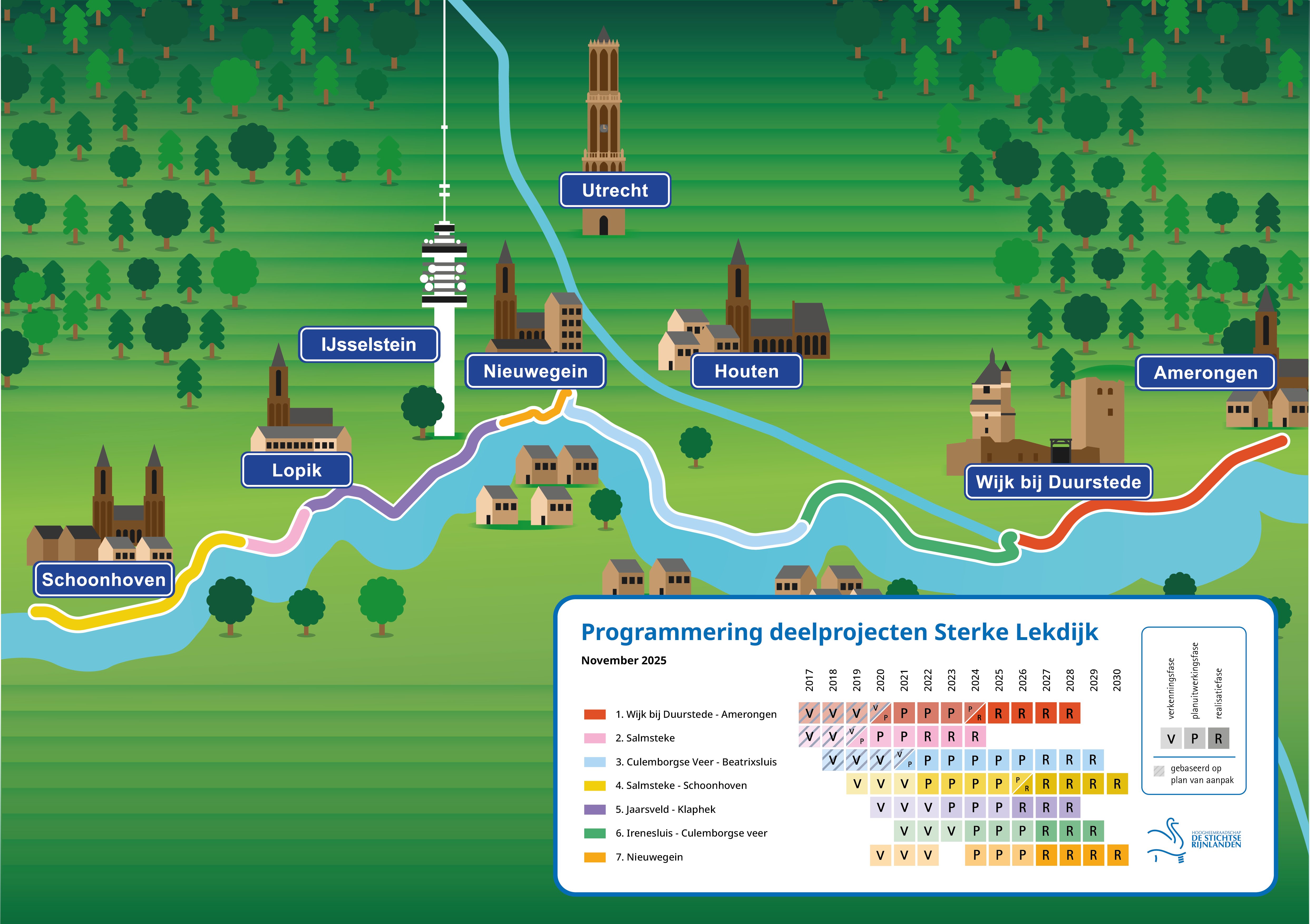 De komende jaren versterkt Hoogheemraadschap de Stichtse Rijnlanden de Lekdijk van Amerongen tot Schoonhoven en voert op veel plekken ook groot onderhoud uit.