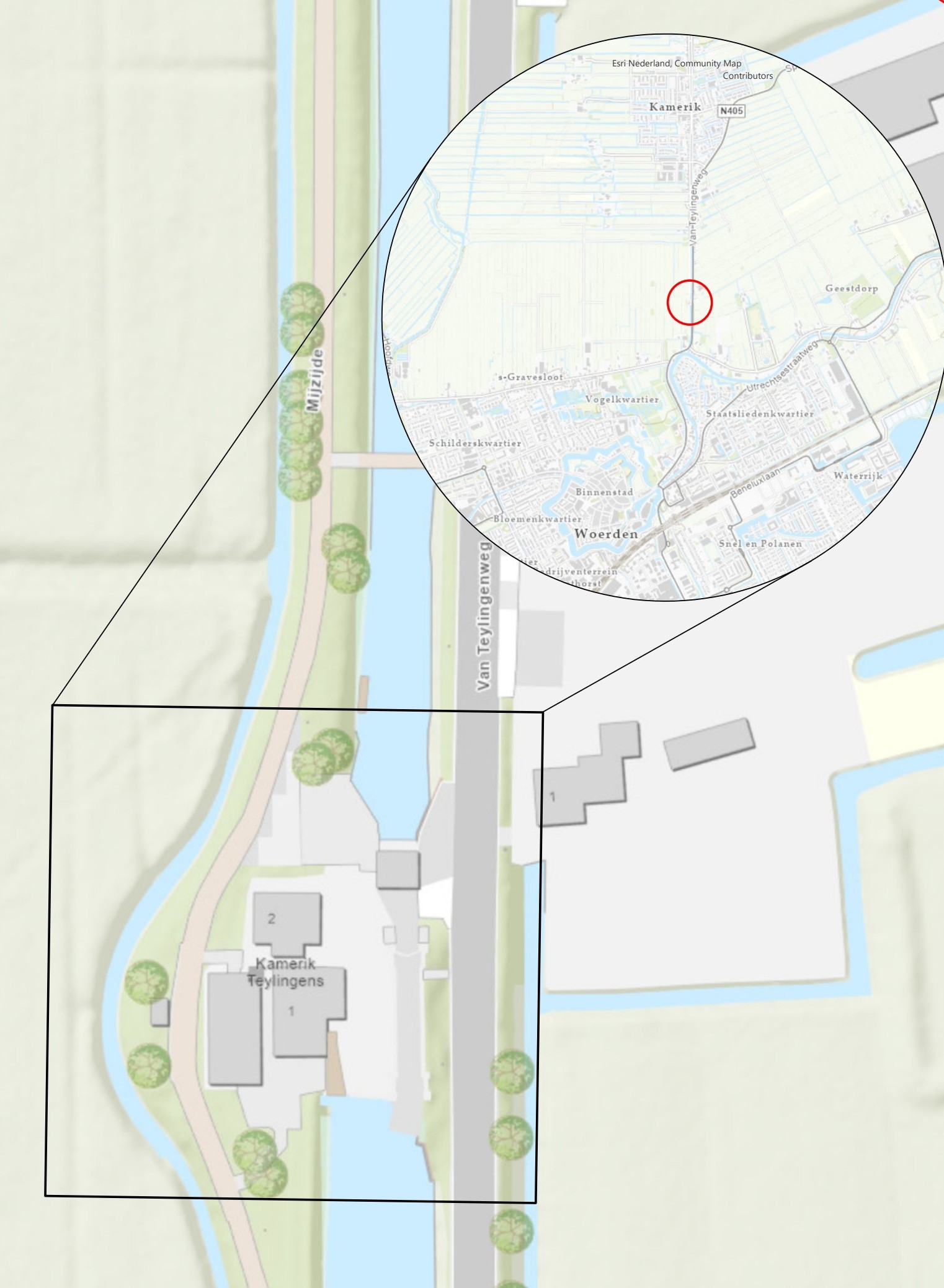 Kaart gemaal en sluis Kamerik Teylingens