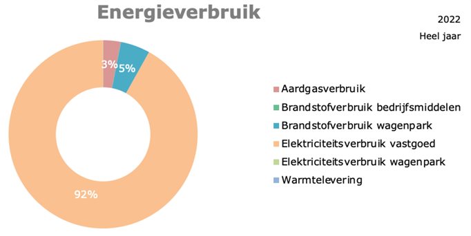 In 2022 hebben wij ruim 136.000 m3 aardgas verbruikt ten behoeve van gebouwverwarming. Daarnaast hebben we 250.000 liter brandstof verbruikt ten behoeve van het wagenpark en materieel. Dit heeft gezorgd voor een emissie van 870 ton CO₂ (koolstofdioxide).